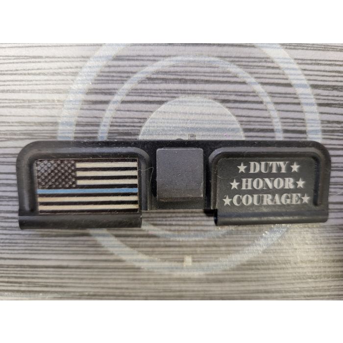 AR15 BLACK ENGRAVED EJECTION PORT DUST COVER - THIN BLUE LINE